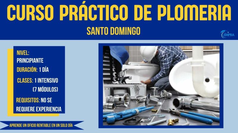 Si buscas un curso intensivo de plomería en Santo Domingo, accesible y práctico, esta formación de un día es la opción perfecta para comenzar a dominar las técnicas básicas de un oficio con gran salida laboral en la República Dominicana.